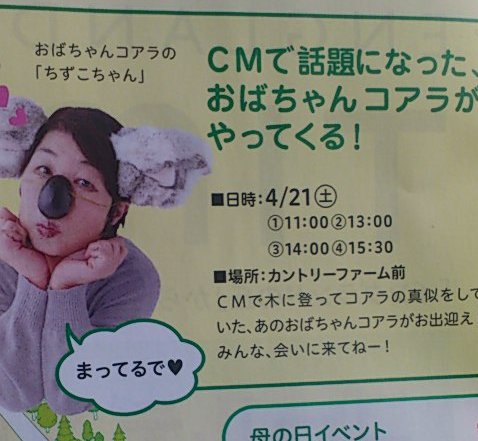 ただのコアラの格好をしとるだけやんか~~出迎えって・・・・CMのように木に登って?ま、なんのCMかは存じ上げませんがw