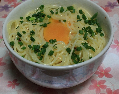 週末に食べる予定だった釜玉すぱですが、今日作りました。3種類買ってきたうち、まずはオーソドックスなカルボナーラから!とはいえ、4種類のチーズがブレンドされたものですが。細麺のスパを5分ほど茹でて、湯きりをしてそのままムーミンの絵柄の器へレッツゴー♪あとは釜玉すぱの素を入れて混ぜ混ぜ~~。器が小さかったため、混ぜるのが一苦労wチーズの香りがプ~~~ンと匂ってくるあとは生卵とネギを散らして、はい、出来上がり~~。早速試食♪んー、何ていうのかなあ・・・・・混ぜ方がまずかったのか、味の薄いとこと濃いとこに分かれる・・・。ってか、全体的に薄い。ということは・・・・湯きりが甘かった・・・・・薄かったからかもしれませんが、味はひらやんにはちょっと合わないかなあ・・・。4種類もチーズをブレンドしないほうがいいかも??まだ試していないバター醤油と和風カレーのほうが期待できると思う。