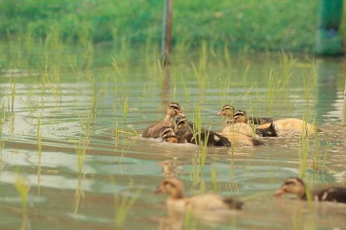 同じ市内でアイガモ農法をしているということをニュースでしていて撮影してきました。おばあちゃんが約50匹のアイガモを飼い、水田に放していました。一応、おばあちゃんの許可をいただいて、いざ現場へ!ちょこまかと動く姿がかわいいですよ~~。撮影していると、急にアイガモ達が一斉に水田から出始めました。どうやらおばあちゃんの声かけに反応したようです。ひらやんも移動。そこでおばあちゃんとアイガモについて対話しました。話している中で、そのおばあちゃんがうちのオカンを知ってるということになって、特別に(?)、「写真を撮ったら??」とエサやり風景や水を飲む風景をセッティングしていただきました。エサを食べてまた水田に戻る姿もまたカワユス(´ェ`*)ネー