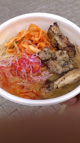 イベントで出展していた店で発見!冷麺なんですが、目の前で焼いたばかりの香ばしい肉も一緒に♪