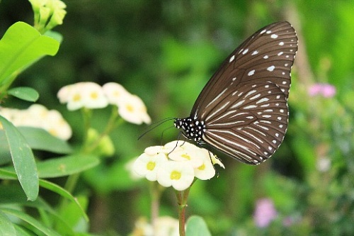 最近、家の周りを飛んでいるので追いかけて撮影した。蝶だと思って・・・・。が、よく見たら、蛾だった・・・・蛾ーーーーーーーン Σ(゜ロ゜;)!! ちなみに通常、羽根をたたんでるのが蝶で、広げているのは蛾だとか・・・。ってか、この蛾は初めて見たんですけど・・・。
