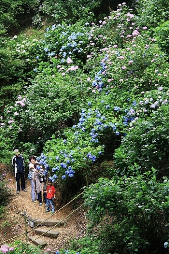 毎年、アジサイが咲き誇るところに行ってきましたー。2週間前はまだ咲いてなかっただけに2回目の訪問となりました。一応、アジサイを見るのに許可が必要なのでおばちゃんに許可をもらって撮影開始。こんな感じでアジサイロードにして見れるようになってます。色としてはブルーとピンクぐらいしかなかったので、ブルーをメインにして撮影してました。でも、アジサイをどう撮るべきか?ベタな構図の撮影でいいのか?いろいろ考えながらもベタな写真を撮りつつ、こういった写真も撮ってみました。隙間からコンニチワ♪ガクアジサイをローアングルで・・・。全体的に言えることですが、水滴がないのが残念であった。帰り際おばちゃんに声をかけられた。「二日連続で撮影に来てる人がおったよー。あんたも明日来たら~~??」ってw