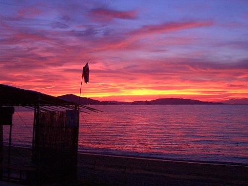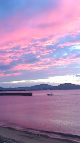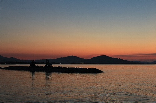 これは一眼レフではないカメラで散歩コースの夕焼けの海を撮影したものです。