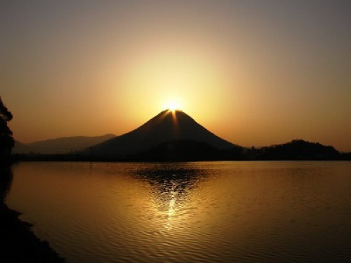 明日はひらやんの家から1時間30分以上かかる距離のところで祭りがあります。丸亀市というところです。うちわの産地で有名なところなんですが、昼間に様々な連が入れ替わりで踊るので写真を撮りに行こうかと思っています。ただ、仕事がたまってるので休むのもどうかと思いながらも、思い切って行く決断をしましたwさて、実はこの丸亀市で今の時期に見れる貴重な景色が有ります。それは飯野山という別名・讃岐富士というのがあるんですが、この時期に約10日間だけ朝日とコラボして現れる「ダイヤモンド富士」という美しい光景が見れるのです!さらに、池があるのでダブルのダイヤモンド富士が見れる!!!ただ、日の出の時間は5時30分ごろ。そうなると逆算してひらやんの家を遅くても4時には出ないといけない。ということは起きる時間が・・・・・(*ノ・ω・)ノオオオオォォォォ でも、撮影をしてみたい光景。でも、今のこの時間にはもう寝ないといけない。でも、丸亀に行くついでなら撮っておきたい。でも、撮影時の設定がいまいち分からない。でも、チャンスを逃してしまうと・・・・。いろんな思いが交錯していましたが、さきほど二日前に撮影された方のブログをたまたま発見しました。それを見ると、肝心の池に水草が多くあり、きれいなダブルとはいかないようです。ひらやんは即断した。「いつもどおり起きよう♪」あ、ちなみにダイヤモンド富士の参考画像を紹介しておきます。