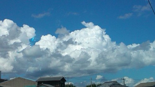 ちょっと大げさなタイトルかなw昼前に外出するときに外の雲がご覧のようでした。ひらやんはこれを「モコモコ雲」と命名したw写真では伝わりにくいですが、ふわっとしたカキ氷のようでもあり、わたがしのようでもある。そして海岸線に車を走らせると・・・・水平線が見渡す限り帯状のモコモコ雲がつながってる!これはなかなか珍しい光景でした。パノラマ写真をつなげていかないといけないので写真には撮らなかったけどねw中国地方は天気が荒れてたのかな?