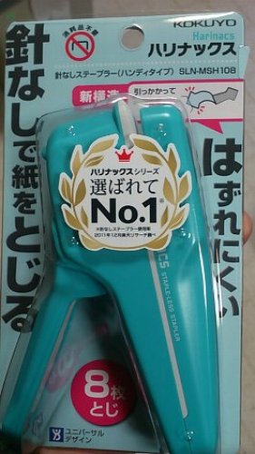 ついに買いました!針のいらないホッチキス!8枚綴じができ、外れにくいように改良してあるそうです。まだ試してませんが、説明書きには通常のホッチキスと「同等の保持力はありません」との記載が。ま、長期間保管しないで、後日捨てるからとりあえず綴じちゃう・・・って使用するのがベストですねー。