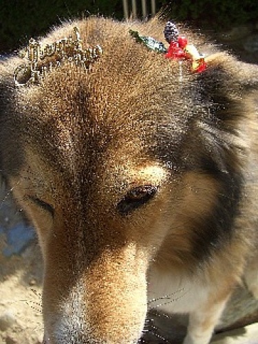 ひさしぶりの登場です。迷惑そうな愛犬・モモに構わず、メリクリの飾りを乗っけてみた (^m^ )クスッ