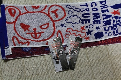 今日の昼から行われた徳島県・アスティとくしまでのドリカムのウラワン。いわゆる、昨年のワンダーランドの裏バージョンがコンセプトとなっています。人気曲上位の曲は一切流さないということです。とはいえ、ドリカムの曲は名曲ぞろいですからね♪さて、この会場へのアクセスは不便でありまして、駐車場のキャパも少なく、会場周辺に止めようにもパーキングがないwバスも土日の便数が極端に少ない。ということで、開場は14時からでしたが、早めに駐車場を確保しようと12時30分入りしました。が、同じ考えの人が結構いたようですwなんとか置けましたがねwそれからはグッズを最初に買いに行って車に戻って開場時間まで昼ごはん食べたりDVDで予習したりして待機。グッズはコチラ!マフラータオルとストラップです。開場時間が来て向かいました。チケットを手に座席を確認。が、アリーナ席ではありましたが、今回はセンターステージの為、ステージを360度観客が取り囲むということで、ひらやんは右サイドのエリアとなってました。しかも、14列目なのに一番後ろ・・・。さらに、ひらやんの右は席がない。一人ぼっちww左はなんと音響・映像・演出などのブースという位置関係w場内アナウンスするお姉さまの姿もありました。ということで、ひらやんはそのブースにあるすべてのカメラの映像をチラチラ見ながらもライブを見るというちょっとお得な席でした。映像責任者はライブ中、「仕事できるんか?」というぐらいノリノリでしたよwwウラワンの曲リストはドリカムファンのひらやんにとってはほとんど知ってる曲ばかり。センターステージは回転もするので、どの席にいてもみんなが見れるようにしてくれました。MCも相変わらず、美和ちゃんが絶好調で大いに楽しませてくれました。そういえば、美和ちゃんの髪型はいつもとちがってソバージュをかけてましたね。それに、ちょっと顔がふっくらした感じになってました。マサさんは挨拶の時にマサさんのモノマネをしているダチョウ倶楽部の肥後さんのモノマネをしてましたよw懐かしい、「アンドレ中村」の登場や、モンキーガールのジャケット撮影に使ったしっぽを取り付けて歌ったりと、サービス精神旺盛。ひらやんはそんな雰囲気の中、女性のパワーを吸収しながら(ま、ひらやんの世代以上ばかりですがw)盛り上がりました。美和ちゃんやマサさんに気付いてほしいと一生懸命にアピールしてましたが、美和ちゃんには気付かれずwマサさんはなんとか1度存在に気付いてくれました~~~O(≧∇≦)O イエイ!! 終わってみれば、3時間というロングライブ!!!そしてさらに最後の最後で思わぬ奇跡が起こったのです!!なにやら、ひらやんの左側でスタッフが集結。その理由がすぐに分かりました。最後の退場の際にひらやんの左横の機材ブースのそばをドリカムのお二人が通ったのです!!そう!まさにひらやんのすぐ目の前にドリカムがいるではないかーーーーーーーー!!さすがにこれだけ近いとお二人にちゃんと目を合わせてもらうことができ、美和ちゃんには投げキッスを、マサさんには指差してもらえましたw一番後ろの席ではありましたが、ホントに非常にラッキーな席になってよかったです!いい思い出となりました!マヂウレ━━(*´∀`*b)━━シィ!!!! そして、記念にライブの終盤にロケット砲で飛んできたサイン入りのテープをGET!以上、ドリカムウラワンレビューでした☆ァディオス☆(`・ω・´)ノ