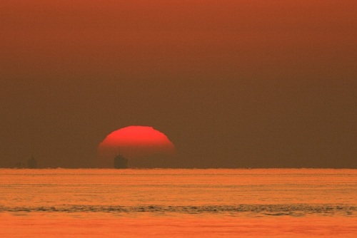 おはようございます♪今朝はいい天気になるということで、ダルマ朝日を撮りに早起きして行ってきました♪<日の出時間は6時12分>しかし、その前にすでに、今日はダルマ朝日が撮れないであろうということを現場に到着してから思っていた。案の定、薄曇が水平線に・・・・せっかくなので、このまま撮影を続けました。「次回のために・・・」と、練習がてら、設定を微調整しながら撮り続けました。ついでに・・まだ、撮影できる期間は10日ほどあるので、予報を見ながらリベンジに!でも、日の出の時間が日を追うごとに早くなるからなあ・・・帰り際に、トビのマウンティングのシーンに出会いました。