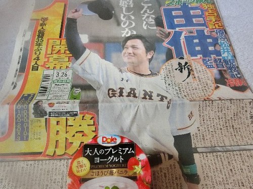 記念の1勝目ということで、スポーツ報知を買ってきました♪ついでに、デザートも♪