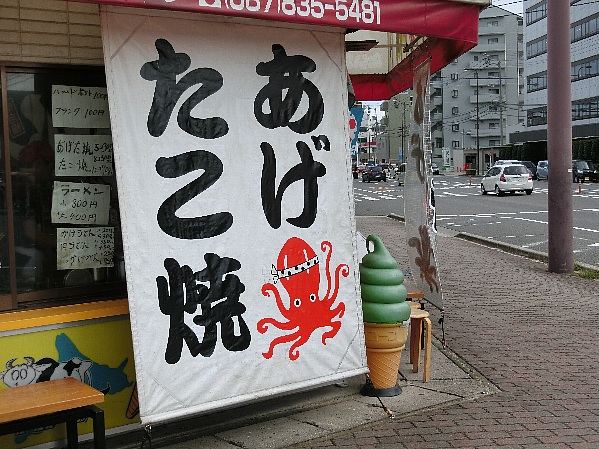 <中編からのつづき>前々から行きたいと思っていた店に行くことにした。それは有名なたこ焼き屋さん。ん?なぜにうどん?ん~~~??なぜに焼きそば?ラーメンまでもが??これは久しぶりにひらやんの胸がワクワクしてきた店内に入ってメニュー表を確認すると・・・・で、でた~~~~~~~!!!気になりすぎるwさらにメニュー表には載ってないけど、テーブルに乗っていていた物。キ、キタ━━━(゜∀゜)━━━ !!!!! 2000円3000円乗せてええんかw??赤いのは・・・・イチゴやんか~~!いろんな方が来られているようで、さまぁ~~ずのサインも。そんな中、ひらやんがチョイスしたのは、いたって普通のメニュー。たこ焼きうどんです。(←どこが普通やw!)あげたこ焼きが乗ってます。麺はご主人の手打ちだそうですが、時間帯が悪かったか、おそらく作り置きしすぎて、麺としては死んでます・・・あげたこ焼きはやはり、専門だけあって美味しかったので、お持ち帰りで買って帰りました。
