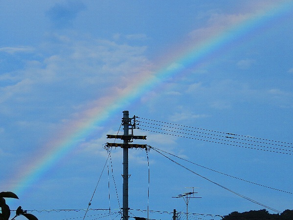 今日、夕方に小雨が降ってきました。そしてしばらくして、雲間から太陽が覗き、天気雨に・・。その瞬間、ひらやんは仕事の手を止めて急いでカメラを用意して外へ出た。<夕方に天気雨>そう、アレを撮るチャンスである!!それが・・・虹!しかも、久しぶりに綺麗な形の虹を見ました♪さらに、2重になってました♪動画もついでに~。