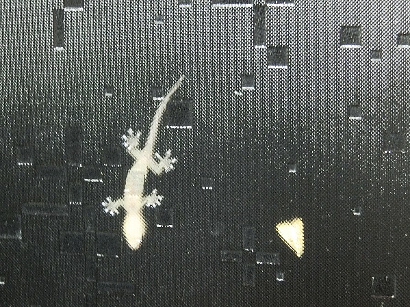 今宵はヤモリのジュニアが現れました。横に獲物がいるのに捕まえない?チラっと見ますが・・・やっぱり捕まえないwこれは何だ?