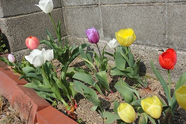 庭のチューリップの花が咲きました。1色かと思ったら、色とりどりのが植わっていたということに気づきました。