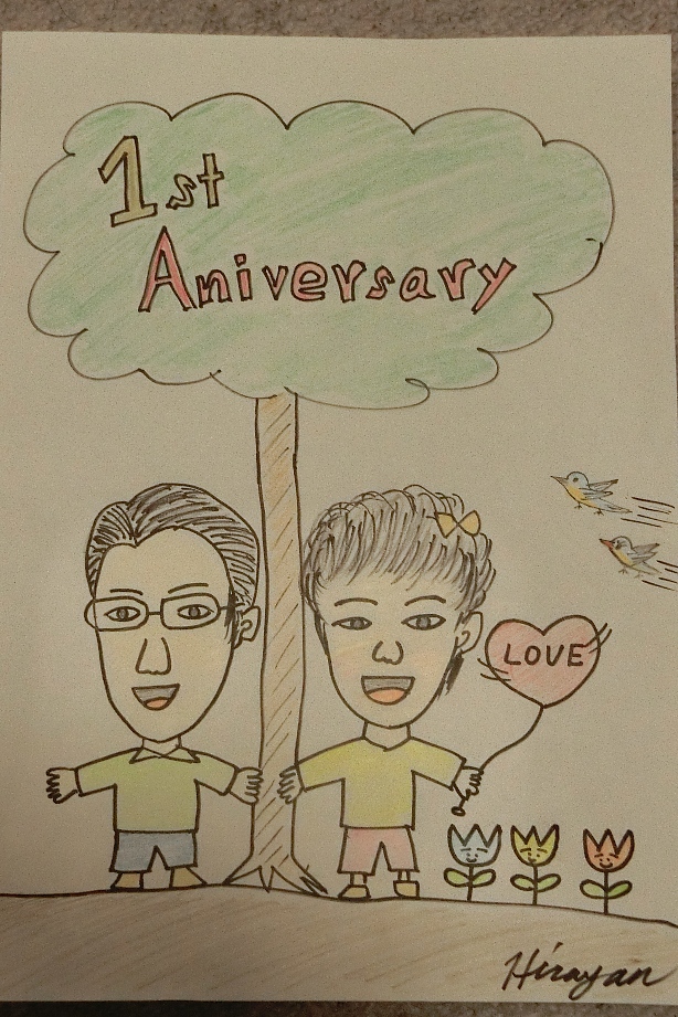 本日、ひらやん結婚1周年を迎えました(まだ、お祝いは受付中)ということで、ちょっと気合い入れて作りました!前日の夜に二人で食べに行きました。海老の天ぷら豚肉とピーマンの炒め玉子スープ豚肉と味噌炒め炒飯残すぐらい、お腹一杯になりましたよ~スマホをいじる嫁ちゃん店内にこんなポスターが貼ってました!