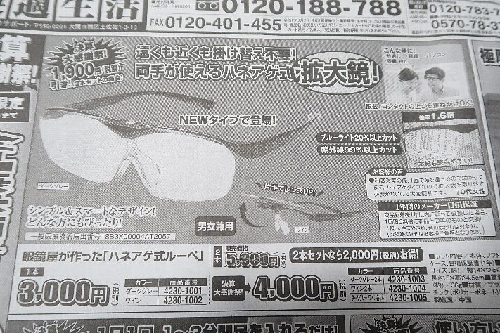 CMでよく流れているハズキルーペ。価格は1万円ですが、新聞広告にこう言うのがあった。さらに、折込チラシでは・・・・メッチャ安ぅ~~~~!