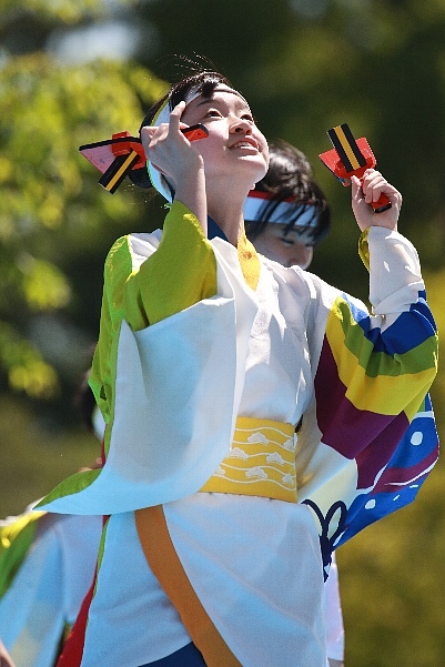 <18日>時間つぶしが終わったあと、この日のメイン会場へ~。スズメ幼鳥これ、有名なものなのでしょうか?会場ではうどん県内のアーティストのライブが行われてました。アニソンを歌ったり、ディズニーとかを歌ったりする方も。琴の演奏に合わせて書道パフォーマンスも。会場限定の高価なマンゴージュレかき氷(500円)をいただきながら鑑賞していました次回より3回に分けて踊りをご紹介♪
