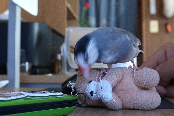 特に右上のボタンを好んで(?)噛みますw気になるご様子wポテトは噛むだけで精一杯でしたw