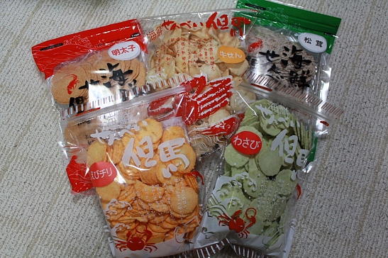 ウニ煎餅やら野菜マヨ煎餅やらとありましたが、とりあえずこの5種を~ぽっ