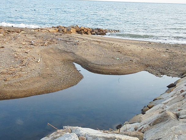海との境界線の部分が土砂によって寸断されてしまいました!!