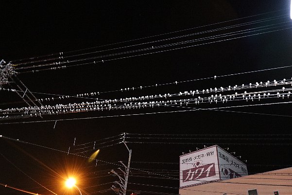 ハクセキレイの塒は夜の風物詩です。