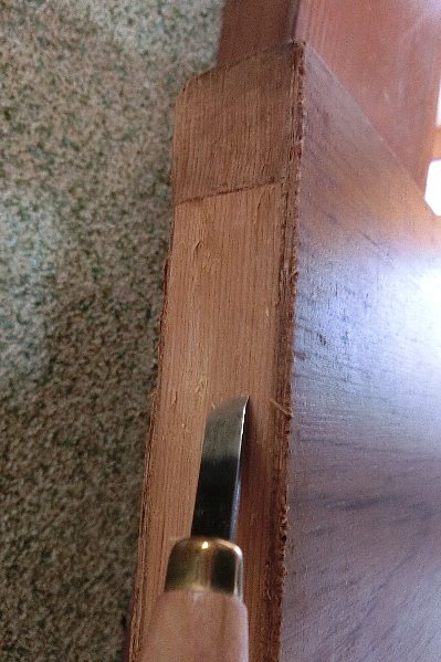 カンナがないので、コツコツと彫刻刀を使って削ることに。