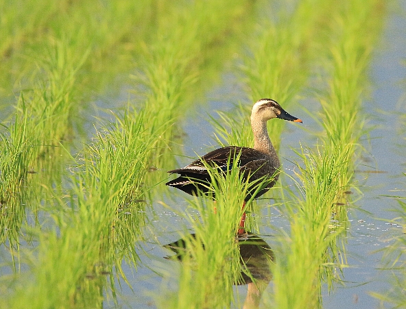 そして昨日はハシビロガモが田んぼでお食事中でした。