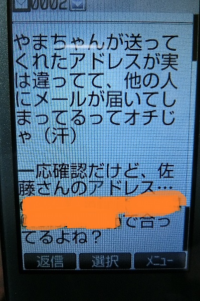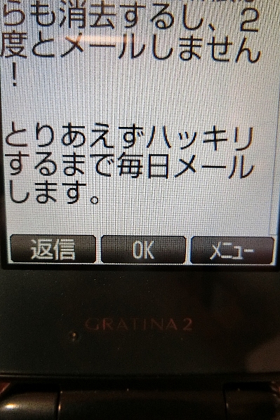 ひらやんのガラケーに先日、こんなショートメールが来た。