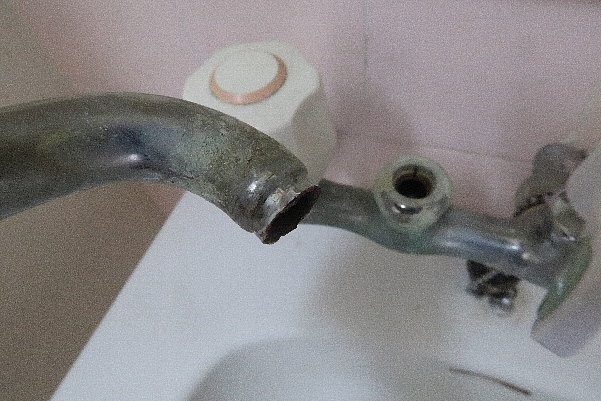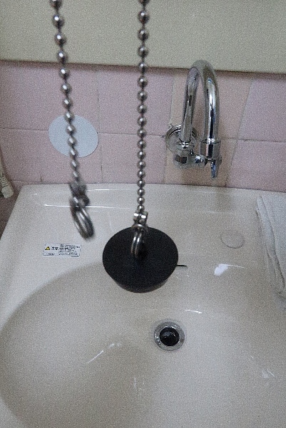本来あるはずの、栓のチェーンを取り付けるところがない・・・・