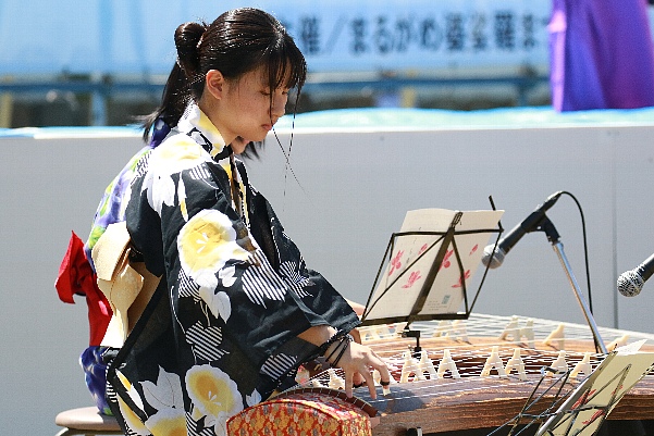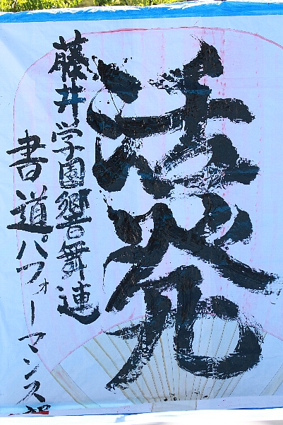 琴の演奏に合わせて書道パフォーマンスも。