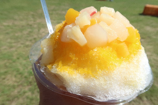会場限定の高価なマンゴージュレかき氷(500円)をいただきながら鑑賞していました