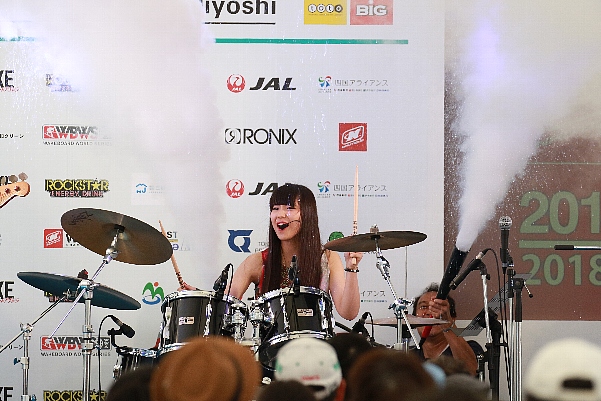 ドローン撮影で会場の大型スクリーンに様子が映し出されていました。