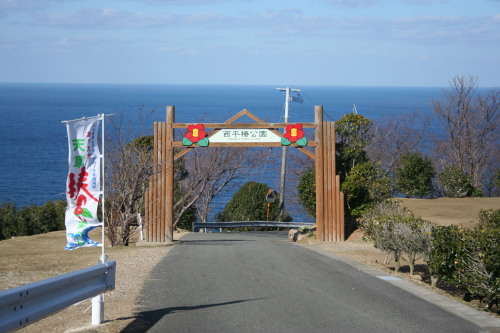 西平椿公園の入り口ゲートと広場、展望所からの風景、の写真です。3月3日午前10時から、第22回あったか天草椿まつりが開催されます。今のところ天気は晴れときどき曇りの予報。昨年、一昨年は雨のために中止となりました。3年ぶりの開催となる今年。成功裏に終わって欲しいと思います。
