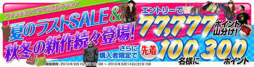 こんにちは楽天ブログスタッフですこの夏最後のアツ~いラストセール更に秋冬の新作大特集のキャンペーンが本日スタートです買い逃していたあのアイテムや秋冬物で気になるアイテムがきっと見つかるはず是非チェックしてみてください以上、楽天ブログスタッフでした。★---------------------------------------★ みんなの疑問に答える<教えて♪マスターもチェック >>その他分からないことは 楽天ブログヘルプページへ
