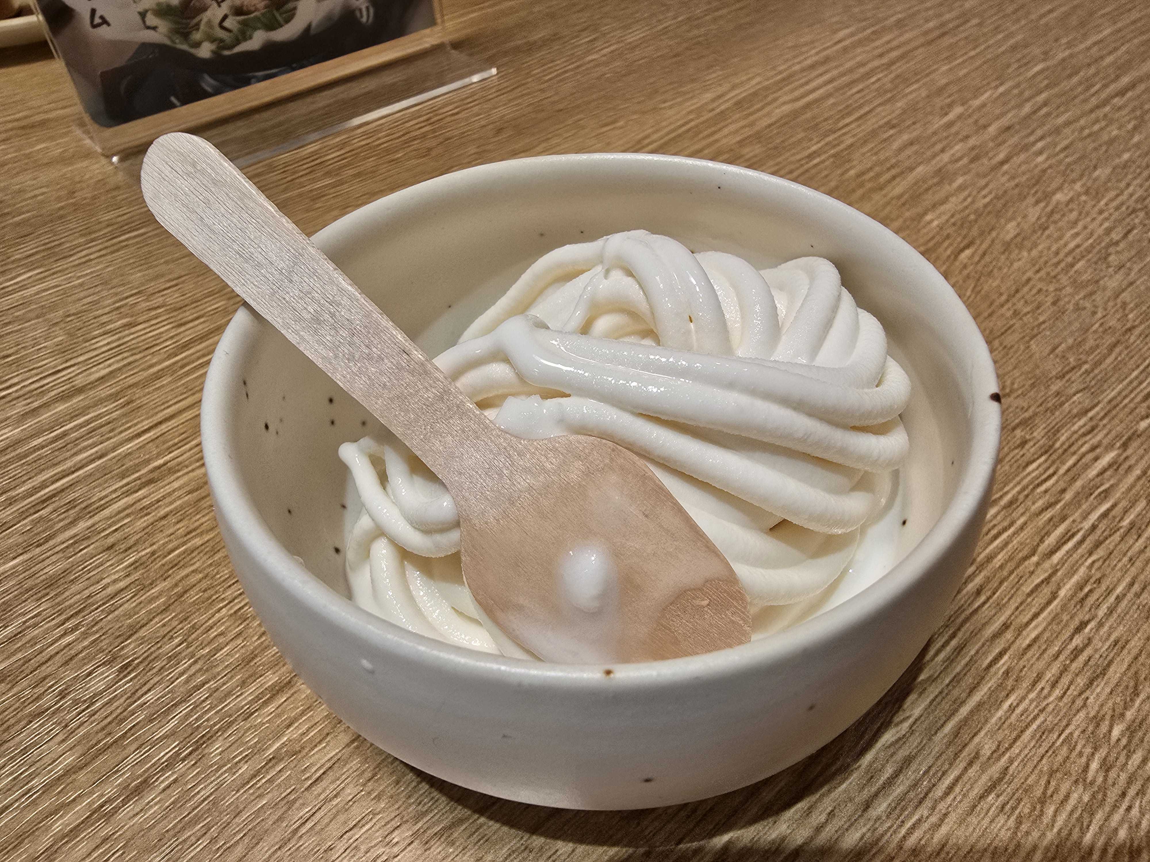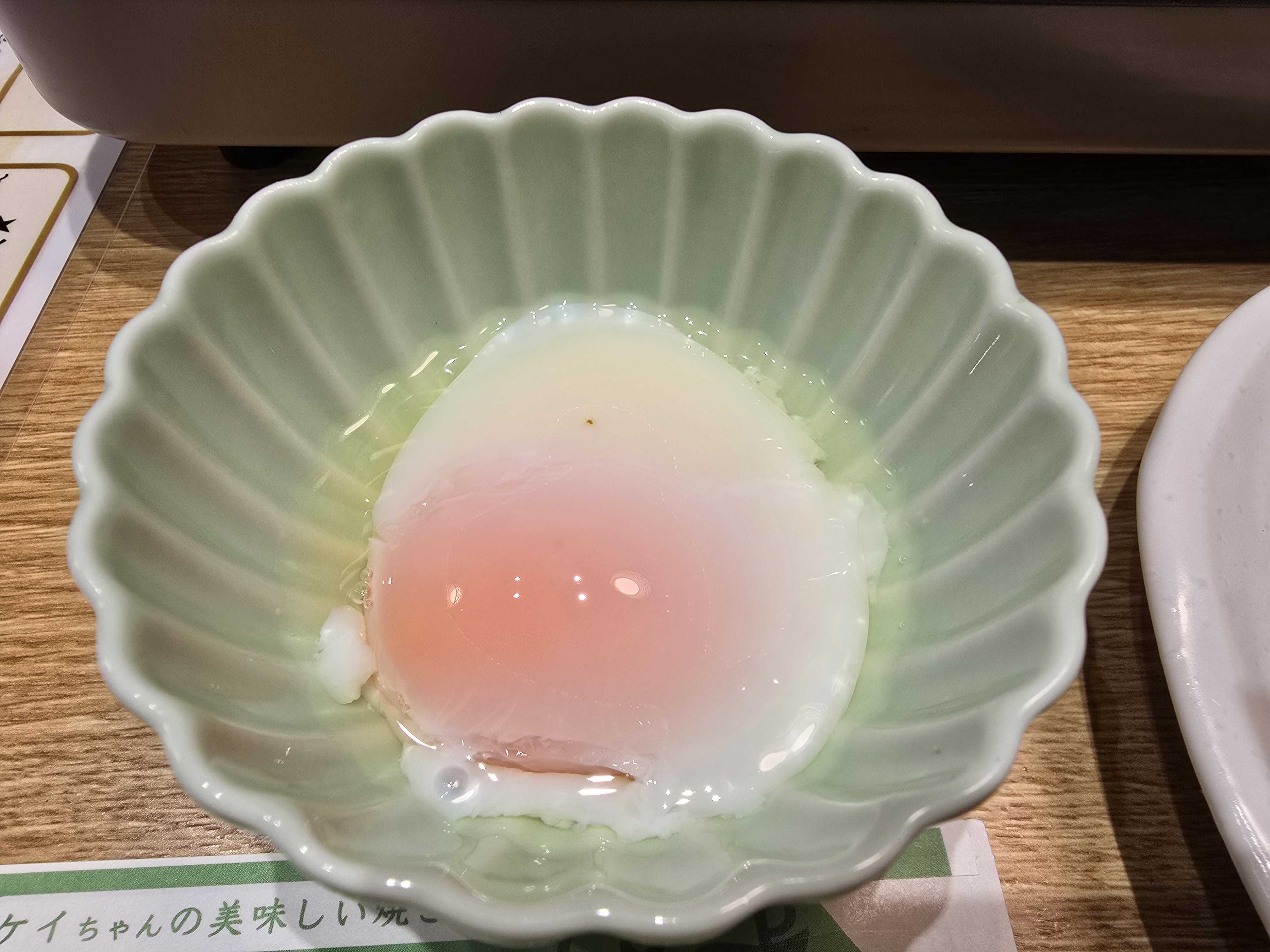 なぜかサービスで温泉卵が二つやってきたびっくり食後のデザートがあるので、食べ終わったら、タッチパネルで注文してくださいってぽっ