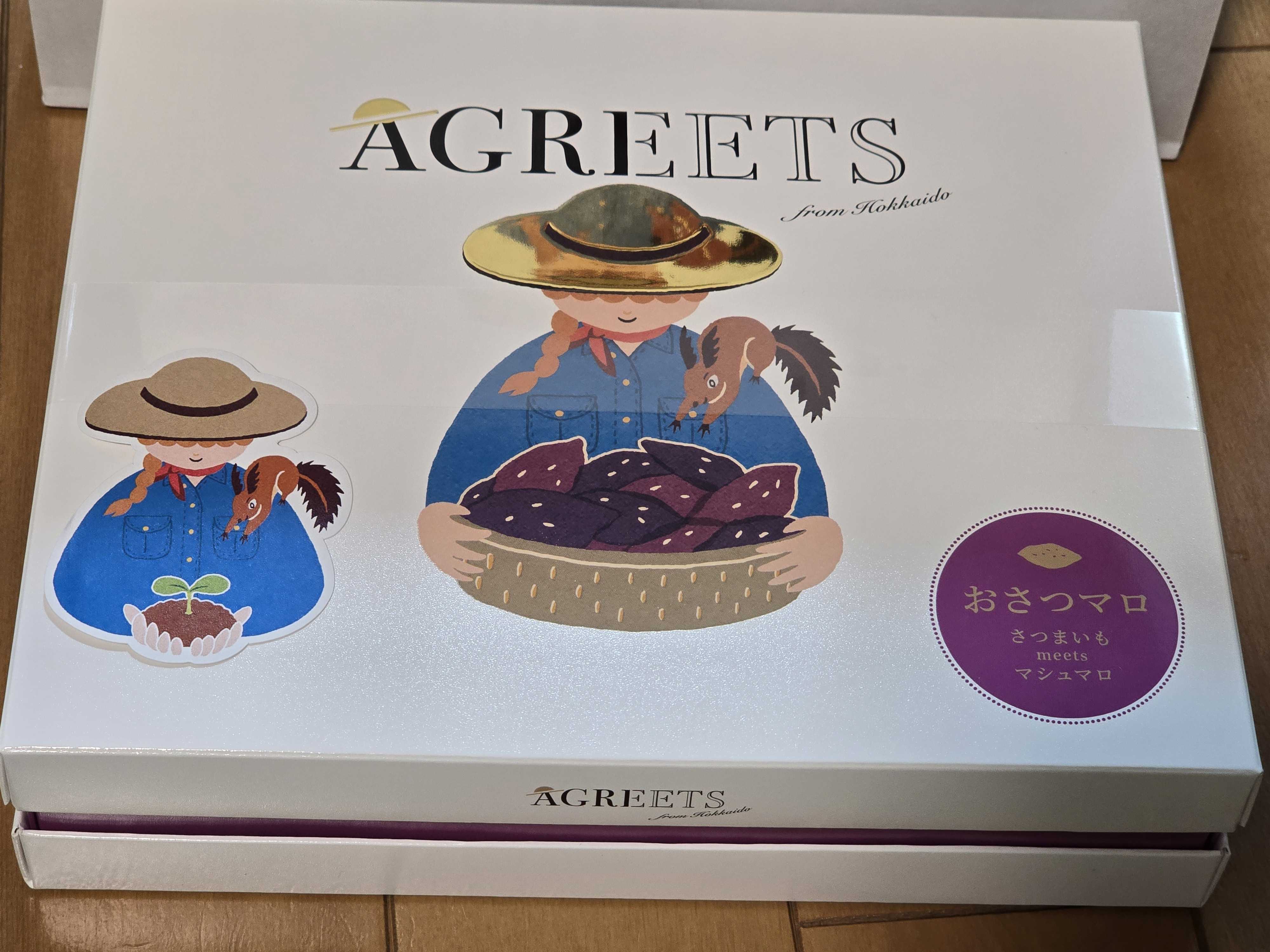 3日 補聴器屋さんに行った時に通った大北海道展母からのリクエストは、白い恋人とじゃがポックルでした。大混雑の中、どんだけ探しても、じゃがポックルがないチラシを貰って、この日は、退散6日 旦那がライブに行くと言ったので、大北海道展に行ってきましたじゃがポックル・六花亭の店頭販売は、南館1階 オルガン広場とのこと。大北海道展は、本館7階だけど、南館1階まで歩くじゃがポックルとわかさいもを手に持って、白い恋人を探すも、白い恋人は、本館8階だって2つだけ買って、母にその旨伝えると、自分は、白い恋人が欲しいと・・・駄々こねる白い恋人は、たまにスーパーでも売ってるよ。と、伝えるも・・・なんだか、気に入らない口調仕方がないので、本館7階まで行ってきましたよ~白い恋人を購入し、もう、用は済んだと、帰ろうとしたら・・・店員さんに、こちらの商品 整理券が居るけど、今日は、まだあるから、どうですかと・・・少し悩んだものの、これも、運命の出会いと解釈して、購入しましたAGREETS(アグリーツ) おさつマロ 1箱4個入り 税込1,792円ホワイトチョコ×道産さつまいも×マシュマロのマリアージュ「畑が育てたスイーツです」リビングに置いといて、旦那に見つかったら、大変~と、親の部屋に隠す三連休で、食べる予定だったのに、予定外の出来事により、ご在宅頃合いを見て、食べたいと思います