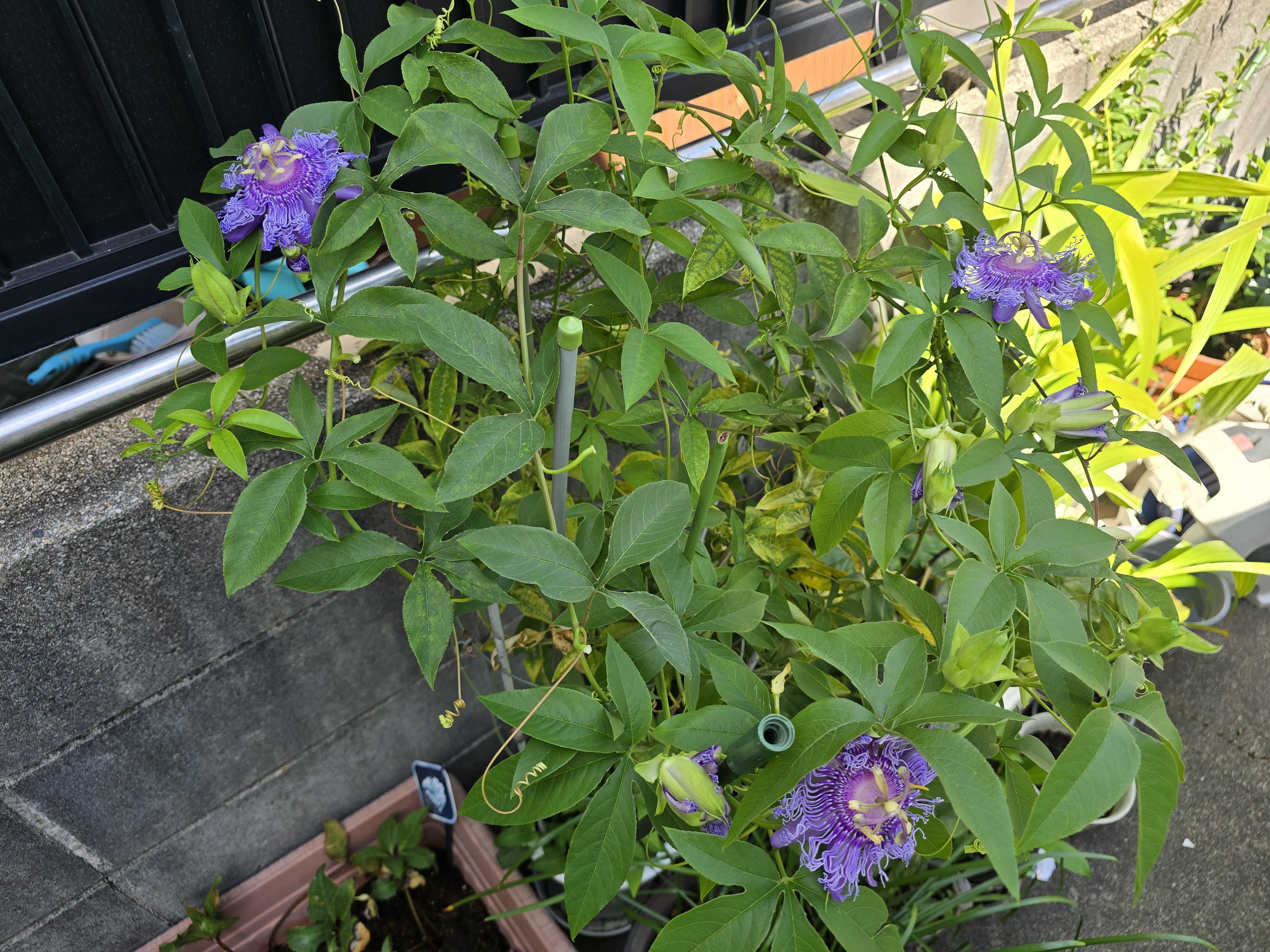 元々トケイソウは、ネットフレンドのマルリッキーさんが種を購入した時に分けてくださいました。ですが・・・我が家の種は、発芽したと思って喜んで観察していたら、雑草だったというオチ2023年7月の日記それでも、花が見たいと、トケイソウの苗をヤフオクで買う2023年9月こちらは、越冬に失敗して、枯れてしまう諦めきれない私は、今度は、メルカリで購入しました2024年8月品種:チャボトケイソウチャボトケイソウについて調べてみたら【商品説明】アメリカ南東部原産のつる性植物で、市販のハーブティー「パッションフラワー」に使われている品種です。全草にリラックス効果があります。トケイソウの中では非常に耐寒性が強く、マイナス10度以下でも生育すると言われます。(ネットより)だから、今回は、越冬に失敗せず、元気に大きく育っているみたいです9/27は、一度に3輪も咲いてましたよパッションフルーツは、トケイソウ科トケイソウ属のクダモノトケイソウとう品種で、食用の果実を持つ植物です。一方、トケイソウは、観賞用の花を持つ植物で、500種類以上の品種があるそうです。(ネットより)我が家のは、食べれる品種のようだけど、ちょっと怖いですねとりあえず、収穫したら、また、紹介しますね9月29日のお月様ブロ友さん達が月が綺麗と言っていたので、ちょっと撮ってみました