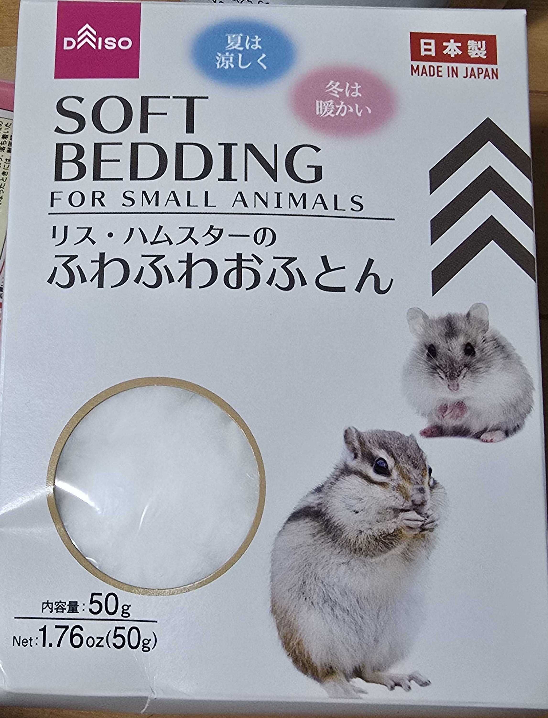 少し前からの私の悩み事フクロモモンガのみるくの爪が鋭くて、切りたいけど、大人しくしているのは、2、3本まで小さいから、切りにくいので、フクロモモンガの爪切りをしてくれる獣医さんを探すも、近くにはないみるくをポーチに入れて、遠出はしたくないし・・・今までは、フワフワのタオルを寝床に入れてたんだけど、爪が引っかかってしまって外に出れない時があり。私が外そうとすると、嫌がって、威嚇の声を出して、噛みつこうとするでも、小さい指が取れなくて、圧迫されても怖いので、落ち着かせて、引っかかりをとる。爪とぎ用の止まり木を設置しても、即爪がどうこうなるわけでもなくそんな時、ダイソーで、こんなのを見つけました夏は涼しく、冬は暖かい、リス・ハムスターのふわふわおふとん 110円綿だから、爪が引っかかる事となく、自分なりの寝床も作れる隙間から、覗いてますよ