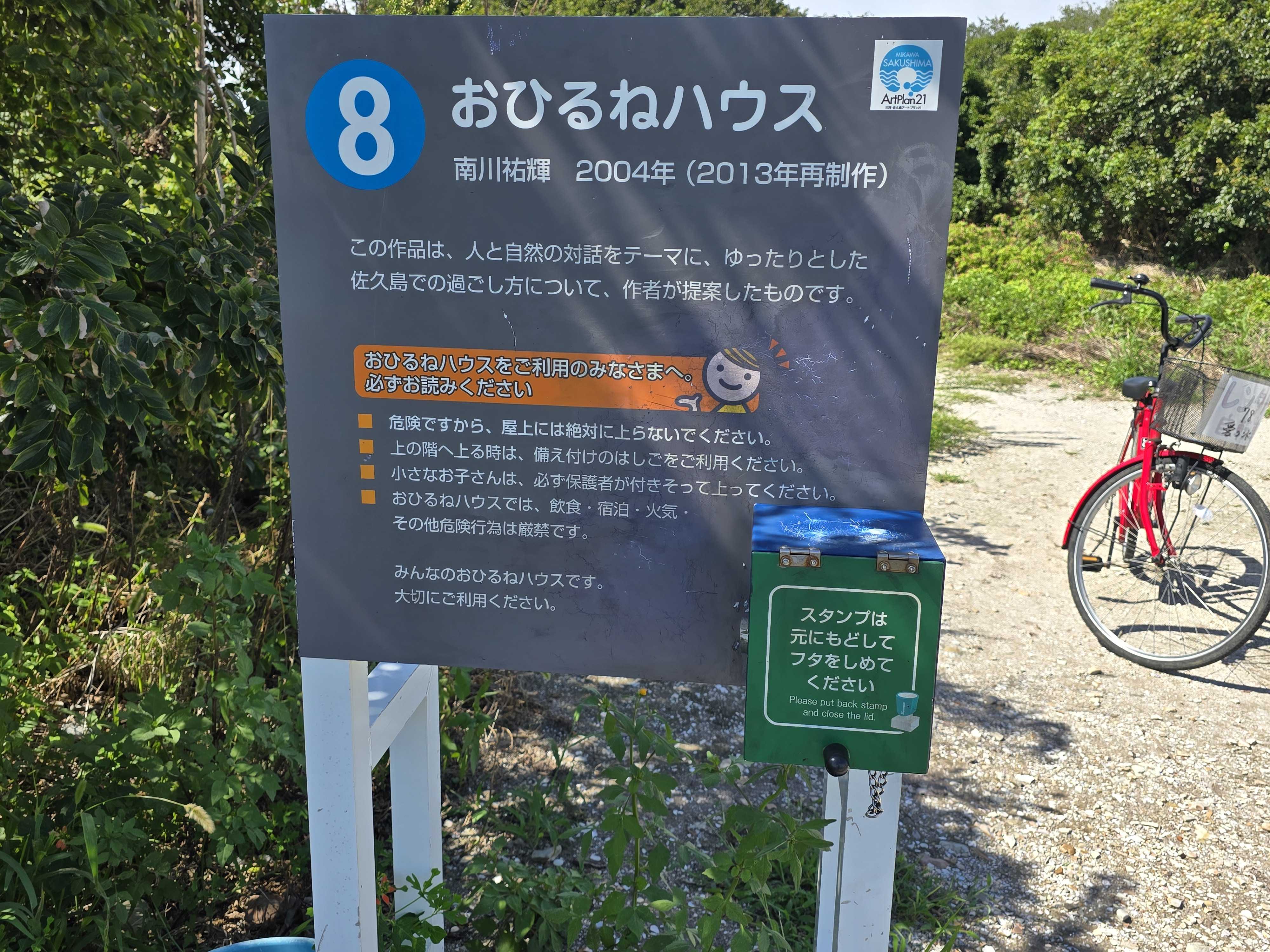 佐久島は、2001年からスタートした佐久島のアート・プロジェクトが有名になり、我が家も知りました3年前は、旦那が行きたがり、行ったんだけど・・・今回は、息子君が行きたがった。息子君は、車があまり無くて、思いっきり自転車が走れる所に行きたかっただけなんですけどねアートに興味がある訳でもなくおひるねハウスに到着コチラ人気のアートです。前回は、諦めた前の人達、全然譲ろうとせず、マイペースでの写真撮影まあ、人気スポットだから、仕方がないけど~小さいカニ🦀がいたから、写真撮ったんだけど・・・🦀がどこにいるのか本当は、はしごに上って、それぞれ9か所に座ったりして、写真撮るんですが・・・息子君と自転車気の弱い我が家、やっと順番がきたのに、次なる人たちが待たずに乱入数で勝負個々のブースに入って写真撮るのは諦めましたまたもや、看板に惹かれて、旦那が止まるサクカフェaohana幻のふわふわかき氷金魚鉢 1500円 (旦那)白熊 1200円 私オレンジ 900円 息子君私と息子君は、今シーズン初めてのかき氷ふわふわで、めっちゃ美味しかったですさあ、こちらの支払いは・・・3600円のうち、旦那がいくら払ったでしょう