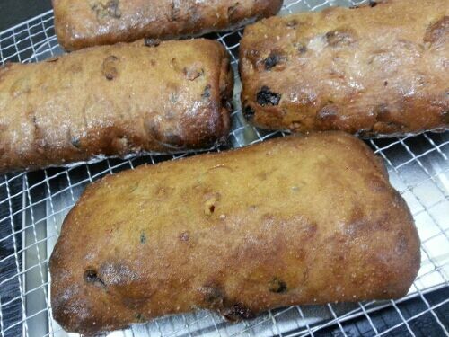 今日もクッキーパン作りの職場で学ばせていただいた。 ビジネスをすることで学んでいく、経験を積む。←真剣に取り組むから。趣味は趣味。 60才までは学んでもいいんだよ。 ブランデー漬けシュトレーン焼き上がりましたよ♪
