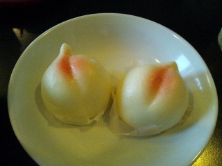 食後の桃饅頭の可愛さに思わずパチリ〓