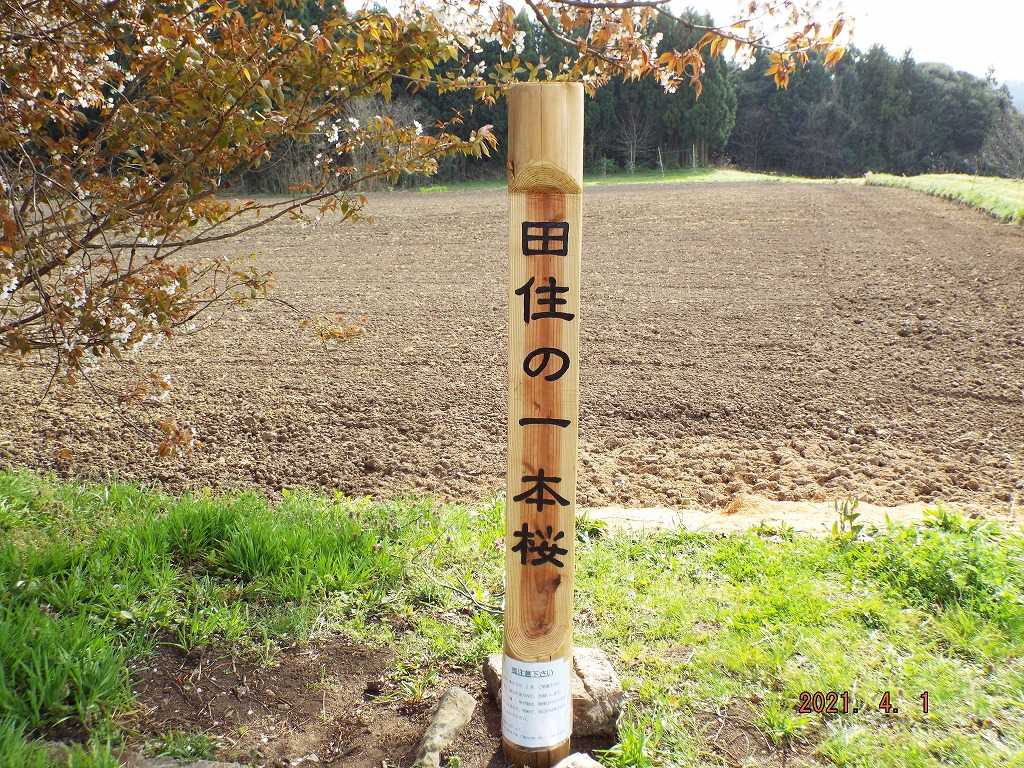 <田住の一本桜> 山桜のようです。自宅から3kmですが迂闊でした。灯台下暗しとはこのことです。