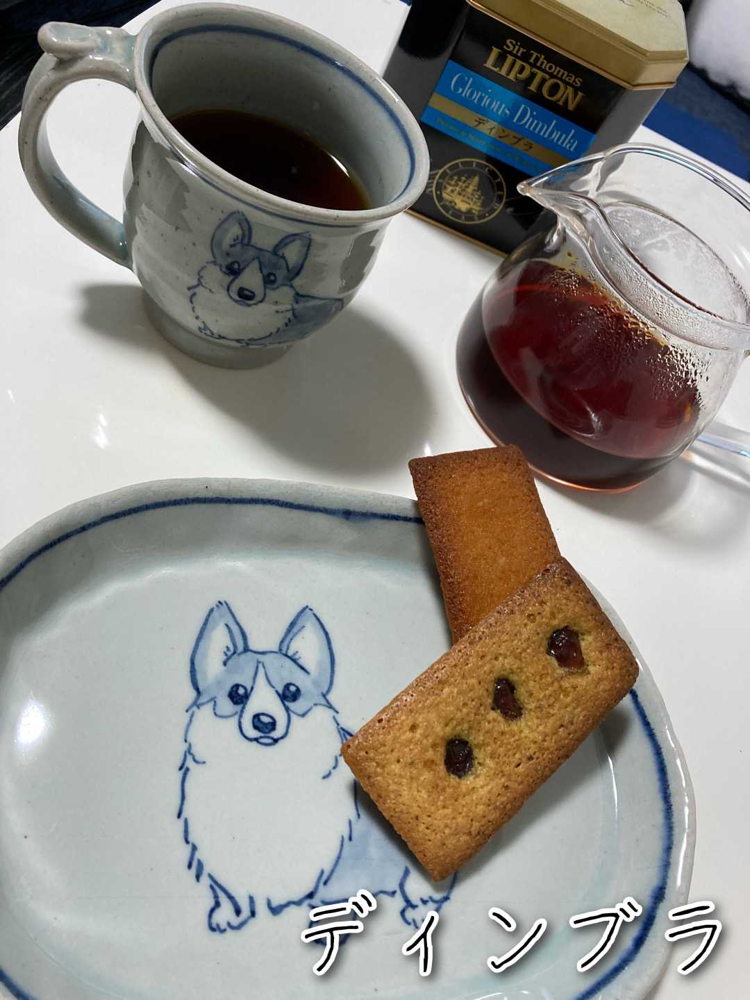 〈好きなコーギーのお皿でティータイム〉この間、職場の後輩ちゃん達と神戸三宮に食べ歩きに行ってきました👍コロナ前は頻繁に行っていたのですが、2~3年振りに行ったってこともあって、まさかの電車を乗り間違えて反対側に行くという大失態を犯し、集合時間に約1時間遅れちゃいました😑大阪に出てきて5年程経っているのですが佐賀の田舎出身の僕に都会の電車は油断するとまだまだ危険です。色々なお店に行って焼き菓子をたくさん買い漁ってきたのですが、今回はラヴニューさんで買ったフィナンシェ2種を食べ比べしてみました☺️プレーンは、しっとりとした食感でアーモンドの香りが強く、重過ぎることもなく食べやすい印象でした。ピスタチオはダークチェリーの甘酸っぱい感じとピスタチオがマッチしてて軽く食べやすい印象でした!お茶は専門学校のフェスティバルで喫茶店をやった時にも使ったディンブラにしました😊紅茶 茶葉 リプトン 公式 無糖 サー・トーマス・リプトン ディンブラ 250g リプトン 紅茶 ギフト おしゃれ リーフティー Lipton LIPTON値段もお手頃で、紅茶が元々苦手な僕が紅茶を好きになったきっかけでもある、飲みやすい紅茶です!お皿は、フリーマーケットで、大好きなコーギーが目につき一目惚れして買いました!コーギーは昔買っていたこともあって短い足で一生懸命走り回るところや、顔がいつも満面の笑顔の印象が強くて昔から大好きなんです🥰