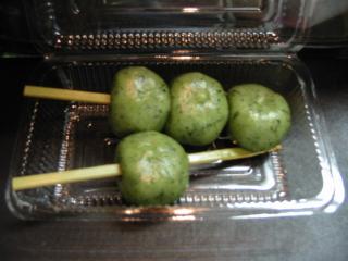 二時ごろ、おばあちゃんが、「なにか、甘いものがたべたいなっ」との、指令が、でたので、高島屋の地下へと、お買い物へ。 何を、買おうか迷っていたところ、お団子屋さん、発見草団子(つぶあんいり)を、ゲット 支払いをするとき、サンプルっぽいみたらしだんごが目の前に、陳列してあったので店員のおにいさんに、「本物ですか?」と、お尋ねし、「はい」とのお答え。でも、思わず、つんつんしてしまいました。おにいさんの「はい」は、冗談だと、思い込み・・・ 指先には、べっとり、たれがつき、おにいさんには、「100人に1人くらいしか、そんなことしない」と、冷静に言われてしまいました。 100人に1人くらいのアホってことが、解りました。やっぱり・・・