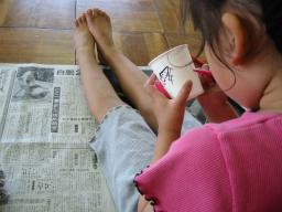 今日は、次女の保育参観に、行って来ました。 音楽に、合わせて、踊ってました。もう、年長さんなので、この可愛い踊り?も、見納でしょうか。 その後、親子で、剣玉練習器?を、作りました。新聞紙を丸めて作ったボールに、紐をつけ、紙コップの底に穴をあけ、紐を通すというものです。 通っている保育所は、伝統的に竹馬と、けん玉を取り組んでいるので、まずは、これで、練習ってことです。がんばれっ。 その後、お楽しみのランチへと、いっても、マックですが・・・メガてりやきに、挑戦もう、嫁には、無理です・・・ギブアップ ゲップ