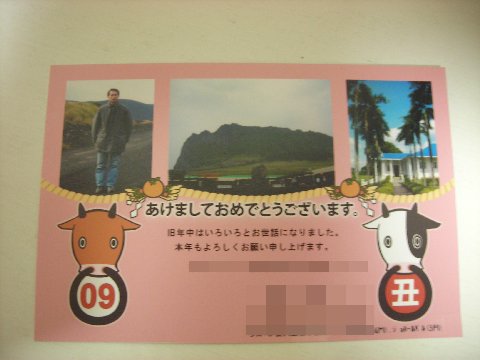 現在2009年の年賀状を書いている。書いている言っても宛名は筆まめがやってくれるし、葉書の文面の欄は印刷に出しているので、ちょこっとコメントを書く程度である。今回は奮発して写真三葉入りの文面にしてみた。1枚あたり葉書代込で160円した。贅沢な年賀状となった。日頃旅行に出掛けているので掲載用の写真には事欠かない。また数年前より年賀状だけのお付き合いとなってしまった人に向けて最新の自分の写真を載せることとした。もう10年も会っていない人も居る。子供が居る人達は、年賀状に皆子供の写真を載せているが、わたしにとっては子供は知らぬ人であって、年賀状をくれる本人が友人や知人である。大変失礼ながらその人の子供はどうでもよい。勿論自分に子供が居れば同じ事をするのだろうが、、、もともと筆無精なので、紙の手紙を書くのはこの年賀状だけである。これを書かなくなってしまったら終わりだなあと思って何とか続けている。1週間ほど掛けてコメントを書いて投函しようかと思っている。