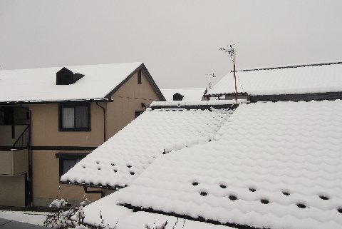 4月21日朝、まさかの降雪となった。 屋根などに数糎の積雪である。季節外れの降雪にびっくりであった。