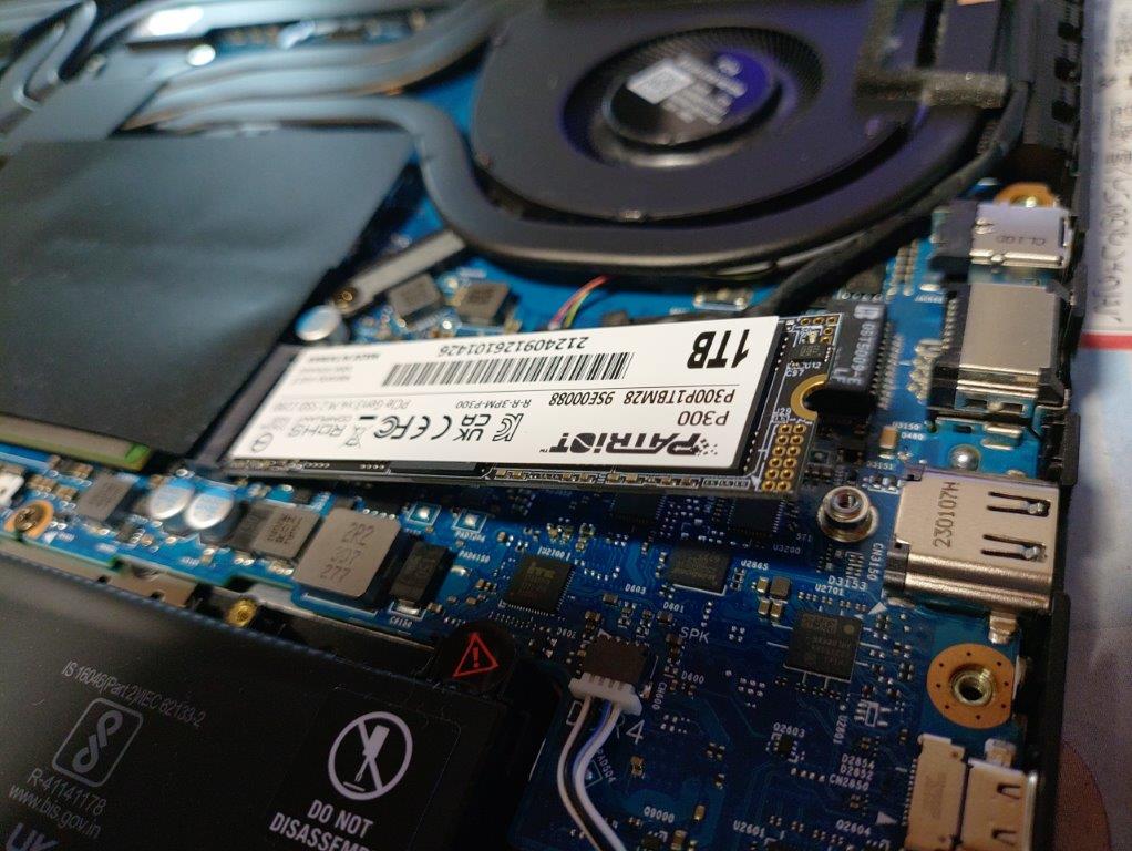 本機 ASUS TUF Gaming F15 は筐体内部に2本目の SSD を増設できるスロットがあり、自己責任で筐体内部にアクセスして SSD を増設したり、メモリを交換することが可能です。当方も最初から SSD 増設、メモリ増量交換を前提に購入しました。