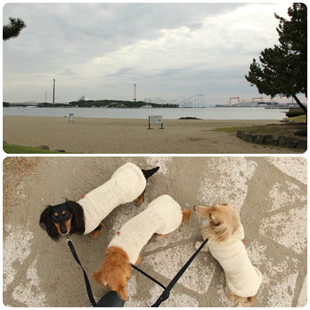 11/27朝の体重:プチ4.4kg大地5.2kgメレ3.8kg*******************************************************福岡県筑紫野市美しが丘北で黒い中型犬が保護されました詳細はさんごりちゃんの日記へ こちら*******************************************************埼玉県鴻巣市で行方不明になったボーダーコリーのハヤテくん目撃情報など、ハヤテくんについての詳細は こちらをご覧ください。*******************************************************兵庫県でミニチュアダックスの男の子が新しいご家族を待っています尼崎市、西宮市、宝塚市、伊丹市にお住まいの方、宜しくお願いします詳細は こちらをご覧ください。*******************************************************写真をクリックすると、フォト蔵で大きくして見られるよ3連休のど真ん中、24日の土曜日は朝からお出かけ今年は震災のボランティアも全くできず・・・冬本番になる前にどうしても行きたくて、朝起きてすぐ横浜を出たの。首都高の箱崎が少し混んでたけど、ほぼ順調最初に寄ったところはここ常磐自動車道の守谷SA(下り)ドッグランは大型&中型と小型わんこのエリアに分かれてた。でも誰もいなかったし、広いほうの大型&中型わんこエリアで遊んだよ買い食いするつもりで朝ごはんは食べてこなかったHITON・・・朝8時だったけど、お外のお店が開いてたので地元名産の揚げかまぼこを購入。お味はお店のお姉さまおすすめの『カニマヨ』美味しかったよ揚げかまぼこ(カニマヨ)280円なり守谷SAを出て、茨城の海産物を買おうと大洗へ。お邪魔したのは飯岡屋水産『海・山直売センターいきいき』さんその場で焼きたての魚介類や美味しいアンコウ汁がいただけるよあんこう汁_300円なりあんこう汁を大サービスしてくれたお兄さん。いいだこを焼いて食べさせてくれたお父さん。オススメのルートを教えてくれたりプチたちを可愛がってくれたり・・・とってもあたたか~い時間を過ごさせていただきました横浜から1人(&3ワン)でいわきまで行って日帰りって言ったらかなり驚いてた(笑)お腹も心も満たされたところで、すぐ近くの大洗海岸へ寄ったよ20歳の頃、会社の同期の女の子4人で来て以来・・・懐かしいな~風がものすごく強くてみんなぼっさぼさだねHITONの髪は風でものすごいことになって、気分は妖怪さ、まだまだ北上するよ続きますもしプチ大地メレを気に入っていただけたら、応援クリックよろしくお願いします( 別ウィンドウが開ききるまではそのままでお願いしますm(_ _)m )今までのハンドメイド作品をまとめましたオーダーご希望の方はリンク先をご覧ください。 こちら 画像をクリックすると今までの作品をご覧いただけます*******************************************************幸せな家庭を待つ子達にご縁が訪れるよう、多数のリンク協力をお願い致します。http://md-rescue.sakura.ne.jp*******************************************************東日本大震災で被災された方の生活支援を行なっています *******************************************************