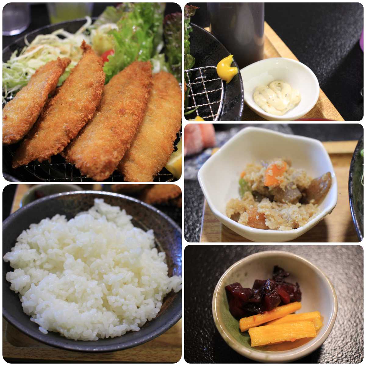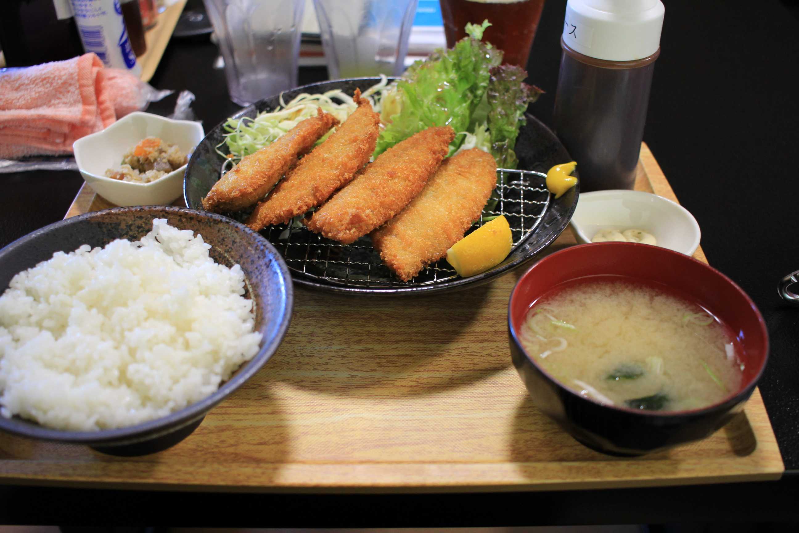 揚げたて熱々ふっくらサクサク(白いお皿に入ったソースはタルタルソース)